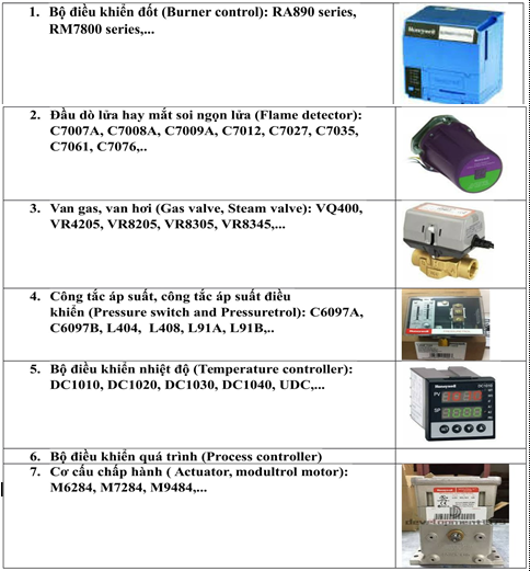 Dưới đây là minh họa về dải sản phẩm chủ yếu của HONEYWELL cho hệ thống sấy, đốt công nghiệp:
