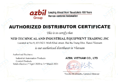 Chứng nhận đại diện công ty NTD nhà phân phối AZBIL VIET NAM Distributor / AZBIL VIETNAM