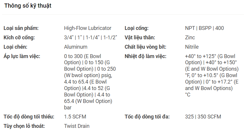 Bộ bôi trơn sương tiêu chuẩn - Dòng L606 (Lưu lượng cao, hạng nặng)