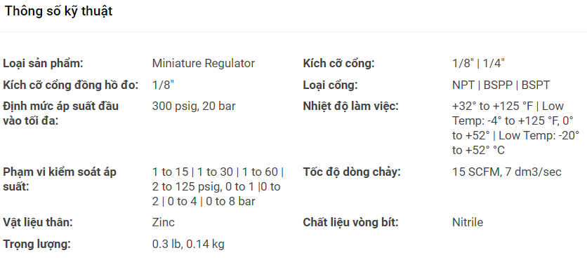 Bộ điều áp mini 14R giảm áp suất không khí, phù hợp công nghiệp.