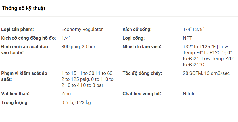 Bộ điều chỉnh 15R giảm áp suất khí nhanh và chính xác.