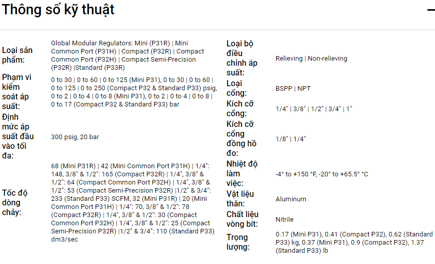 Bộ điều chỉnh FRL toàn cầu (Chuẩn/Cổng chung/Bán chính xác) - Châu Âu