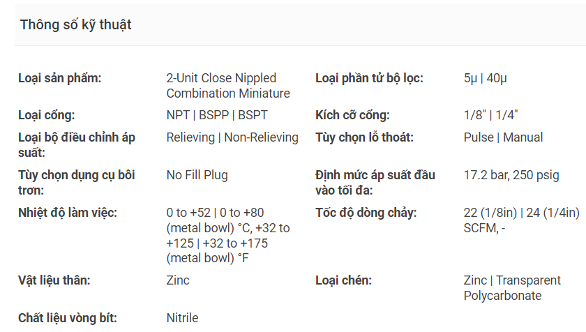 Bộ lọc điều áp và bôi trơn mini 14G của Parker, hiệu quả cao.