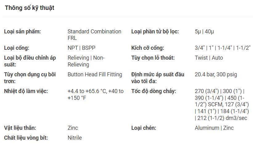 Bộ kết hợp 3 mảnh FRL có ống nối - Dòng C628