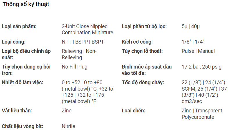 Bộ kết hợp 3 mảnh FRL ống nối - Dòng 14A