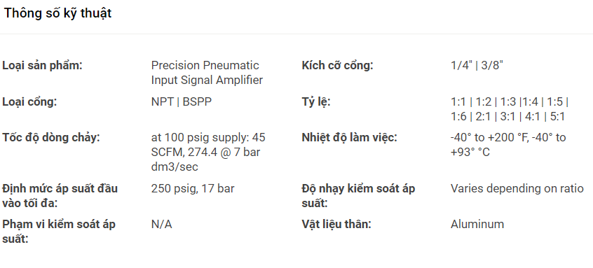 Bộ Khuếch Đại Tín Hiệu Khí Nén Chính Xác - P3BA208 (Nhỏ Gọn)