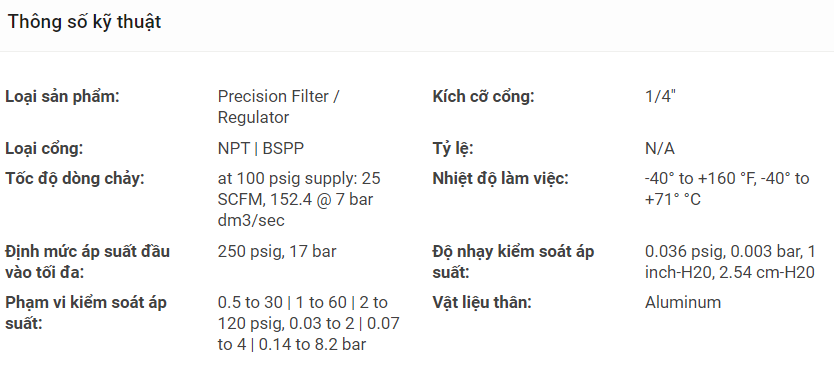 P3RA632 là bộ lọc hạt và điều chỉnh áp suất chính xác.