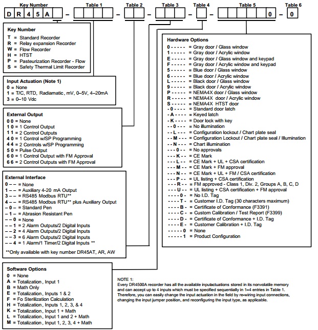 The DR4500A Truline Recorder is a one to four-channel microprocessor-based circular chart recorder. Its "one-pen" stylus printhead produces up to four analog traces and prints alphanumeric chart data on a blank heat-sensitive chart. All four traces share the same time line reference which the Truline prints. This eliminates the error caused by pen alignment offsets in conventional pen designs. Since the Truline prints the chart and generates the analog traces at the same time, there is no error due to variations in chart size caused by changes in temperature and humidity. In addition to printing chart records, the Truline recorderalternately displays process variable values for all channels in the selected engineering units. Models with up to four input channels accept inputs from any one of a variety ofsensors or transmitters within the configurable range limits. The Truline is also available with one or two independent digital controllers and setpoint programmers.