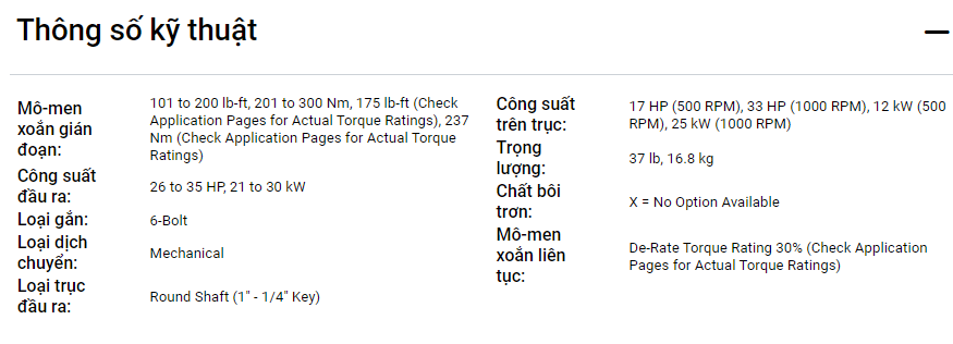 Bộ Truyền Động Cơ Khí 6-Bolt Power Take-Off (PTO) - Seri 290