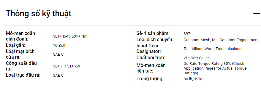 Chelsea 897 được thiết kế cho hộp số Allison 3000/4000, tăng không gian bơm.