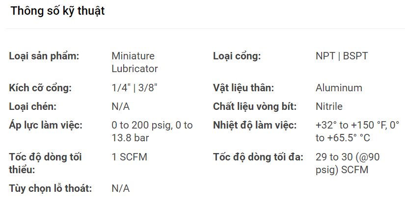 Bộ bôi trơn 04L phun dầu vào luồng khí để bôi trơn tự động.