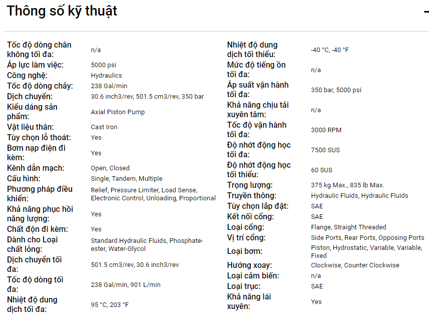 Bơm & Động cơ Parker GOLD CUP® hiệu suất cao, áp lực 6,000 psi.