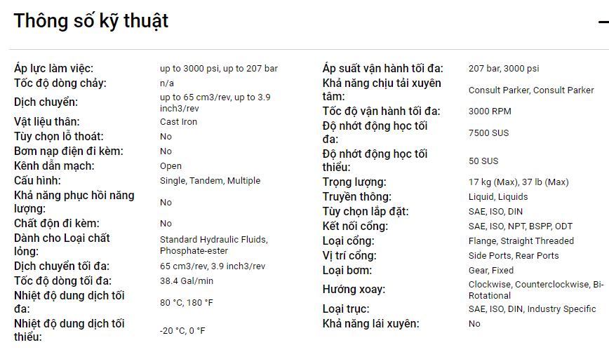 Bơm bánh răng cố định PGP031 của Parker bền bỉ, hiệu suất cao.