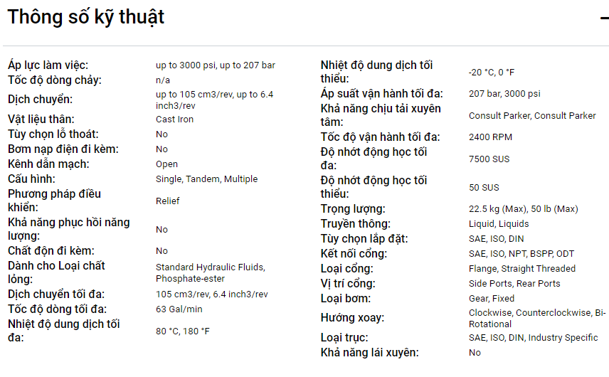 Bơm dầu bánh răng PGP051 của Parker hiệu suất cao, bền bỉ.