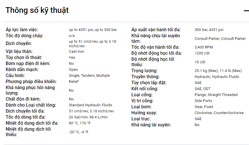Bơm bánh răng Parker PGP130 bền bỉ, hiệu suất cao nhờ cấu tạo gang.