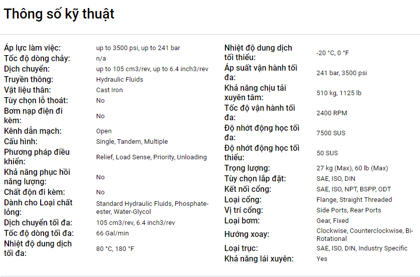 Bơm bánh răng PGP350 của Parker bền bỉ, hiệu suất cao nhờ kết cấu gang.