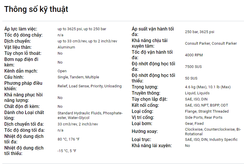 Bơm bánh răng cố định PGP511 của Parker có hiệu suất cao.