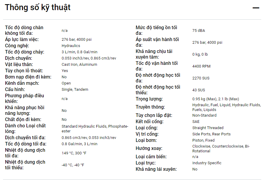 Parker ngừng cung cấp sản phẩm này. Xem tab 'Hỗ trợ Sản phẩm'.
