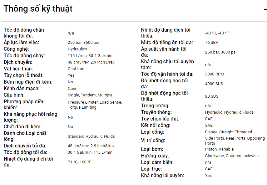 Dòng Parker PVP cung cấp bơm piston thủy lực bền bỉ cho áp suất trung bình.