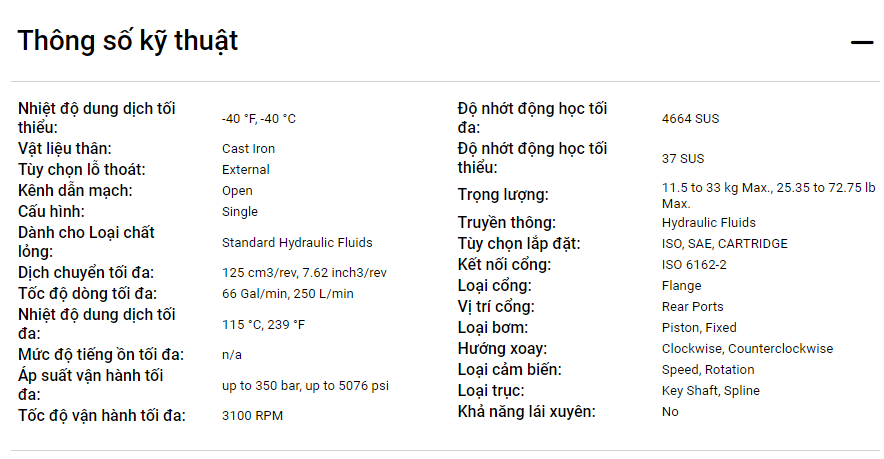Bơm và động cơ thủy lực Parker F10 tối ưu chi phí, áp suất thấp.