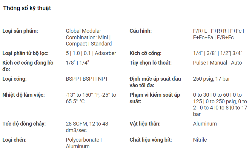 Các bộ FRL toàn cầu là bộ lọc, điều áp và bôi trơn khí nén.