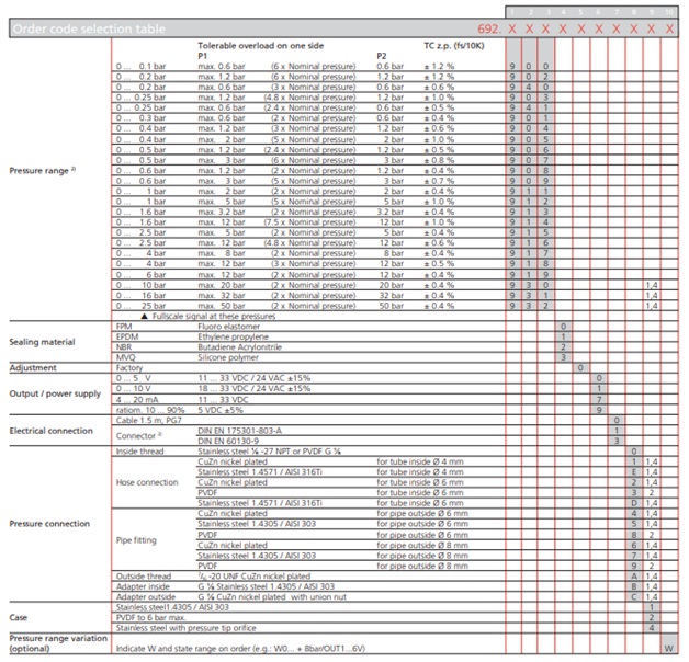 Những Model Thông dụng của Cảm biến chênh áp suất 692: