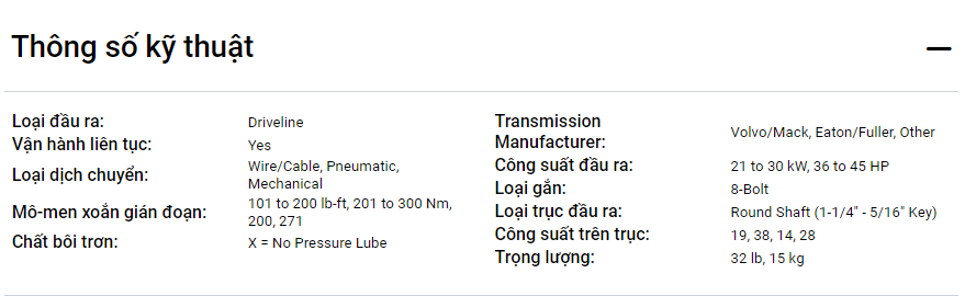 Cơ cấu chuyển đổi cơ khí 8-Bolt Power Take-Off (PTO) - 348 Series
