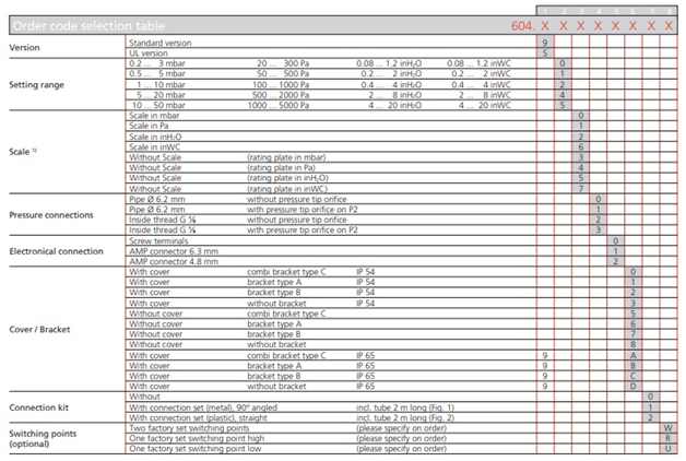 Những Model Thông dụng của Công Tắc Chênh Áp Suất 604: