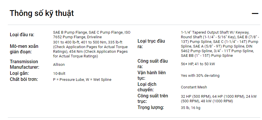 Chelsea 267 Series, PTO 10-Bolt cho Allison và CAT, không chuyển số.