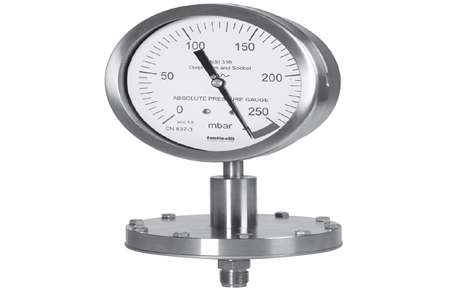 The absolute pressure gauges are employed for those applications that require to measure the pressure without depending from the fluctuations of the atmospheric pressure. This function is carried on with an vacuum chamber used as a reference.