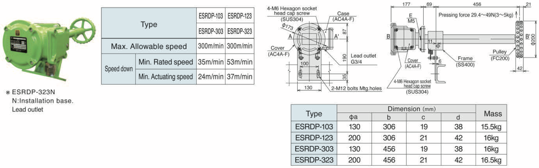 Loại chống nổ d2G4 - Loại đế ESRM-100B có then trục / Khối lượng: 37kg
