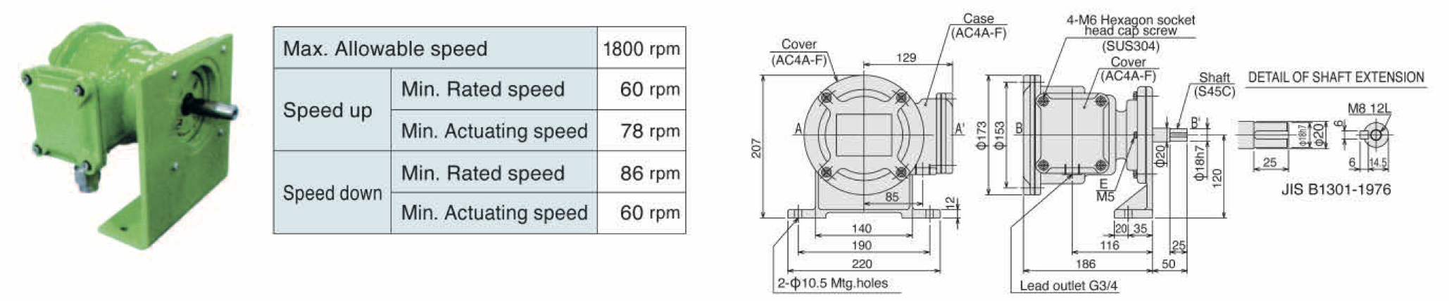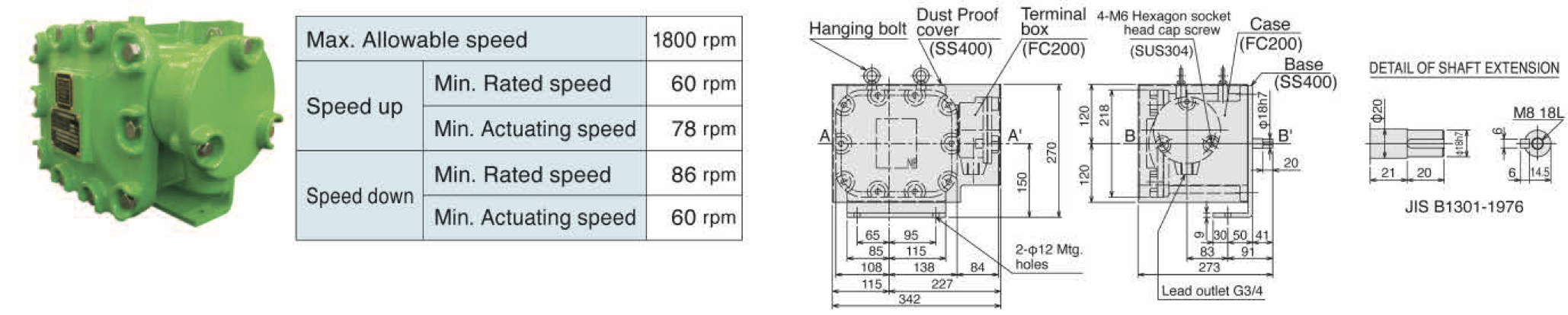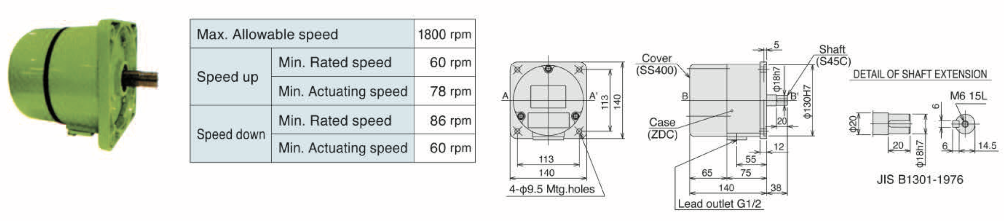 Loại tốc độ thấp ESRL-100 có then trục / Khối lượng: 9,5kg