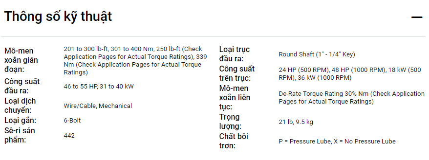 Hộp số cơ khí 6 lỗ bắt - Truyền động sức mạnh (PTO) - Dòng 442