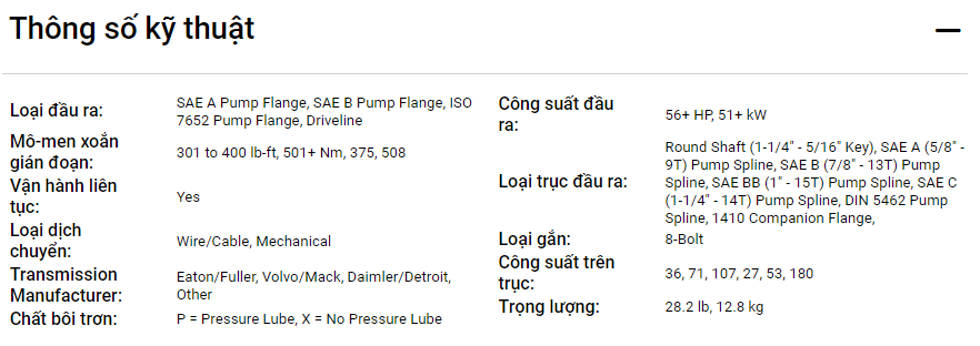Chelsea 680 PTO phù hợp với hầu hết hộp số sàn, tốt cho EATON Fuller.
