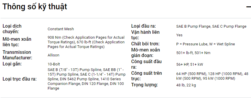 Chelsea 878 Series, PTO cho Allison và CAT, mô-men xoắn cao nhất, nhỏ gọn.