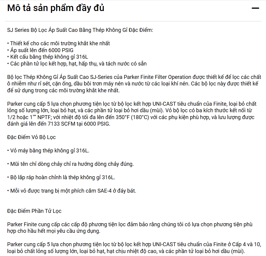 Bộ lọc khí nén SJ Series chịu áp lực cao, dùng trong môi trường khắc nghiệt.