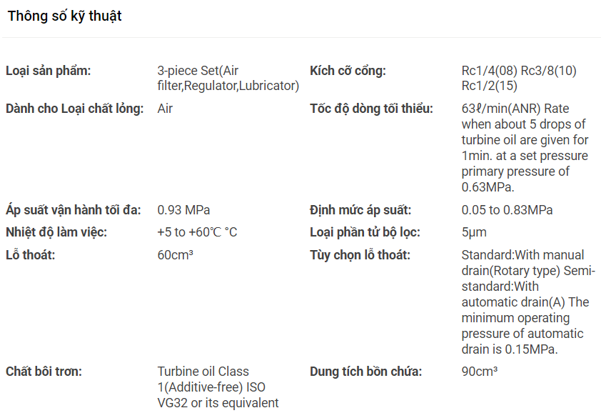 Bộ điều khiển khí nén EFRL2: nhỏ gọn, kết hợp lọc, điều áp, bôi trơn.