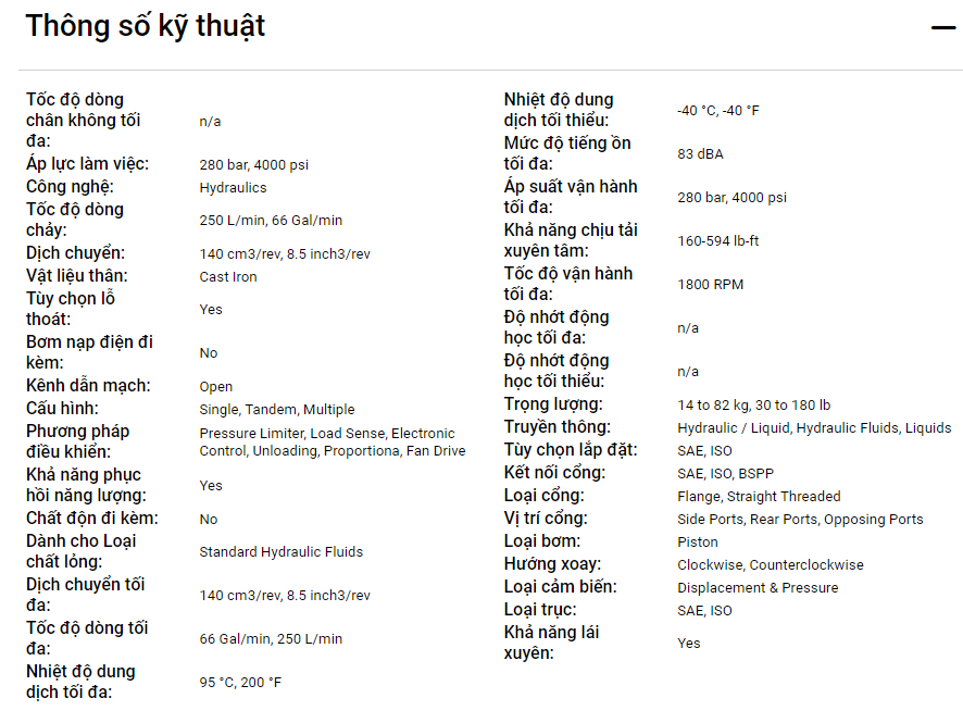 Máy bơm Parker PD Series có áp suất cao, hoạt động êm và hiệu quả.