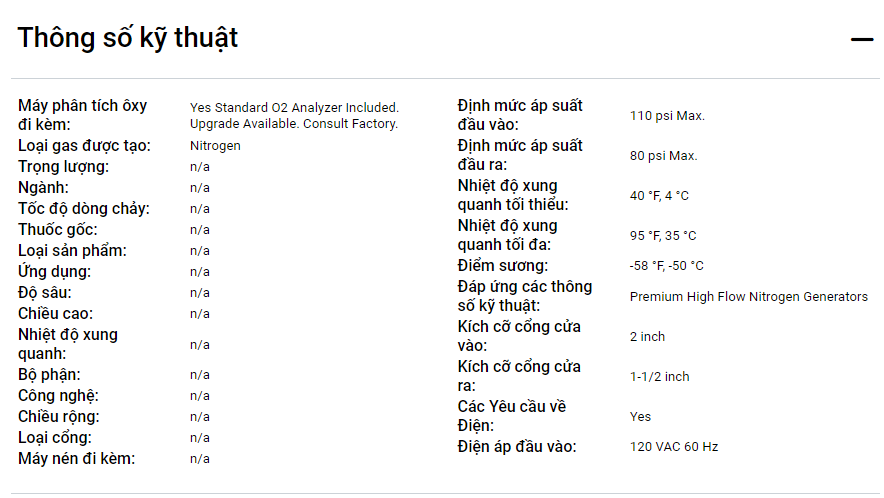 Máy tạo khí nitơ Parker Balston tạo khí nitơ từ không khí nén.
