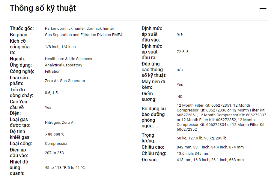 Lý tưởng cho thiết bị phân tích cần nitơ và không khí tinh khiết.
