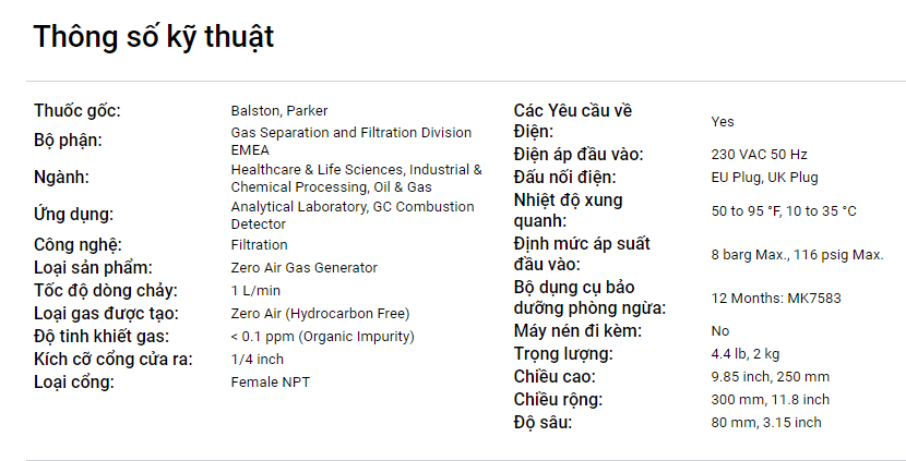 Máy tạo không khí Zero (Lưu lượng thấp lên đến 1 L/phút)