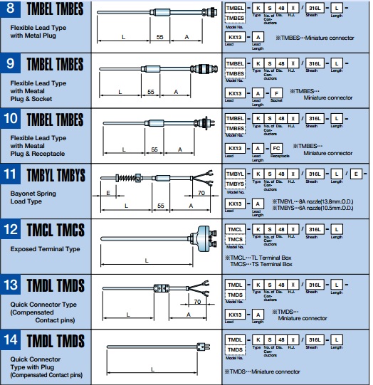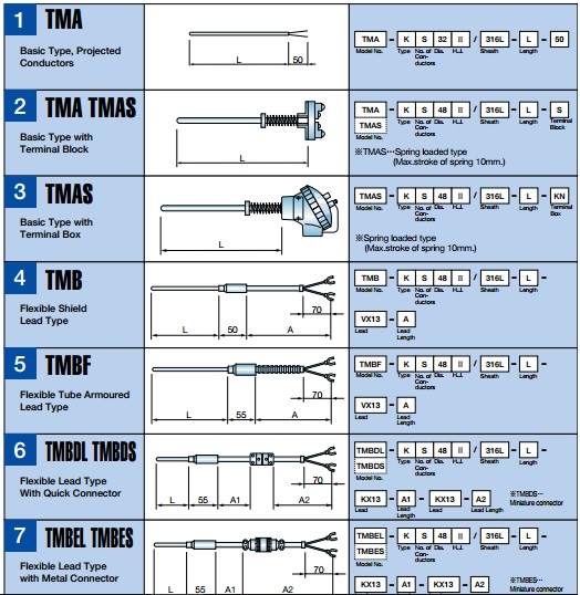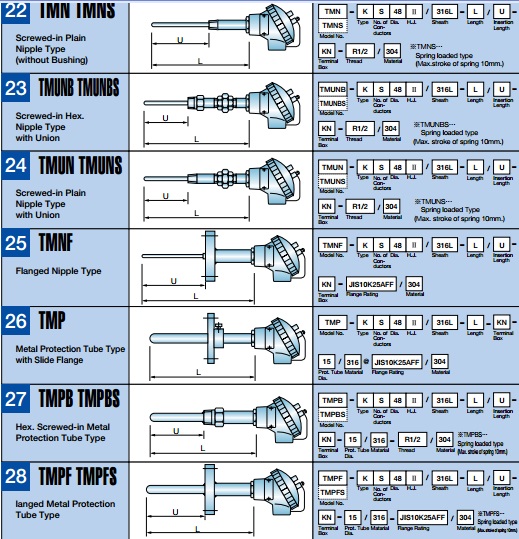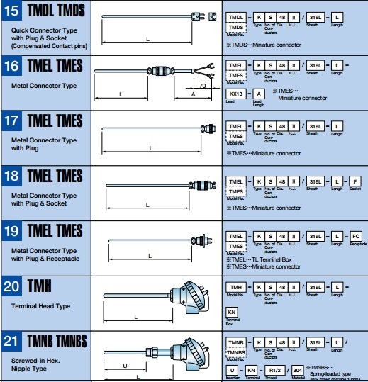 Standard Models of THERMIC Metal Sheathed Thermocouple (Model: TM)