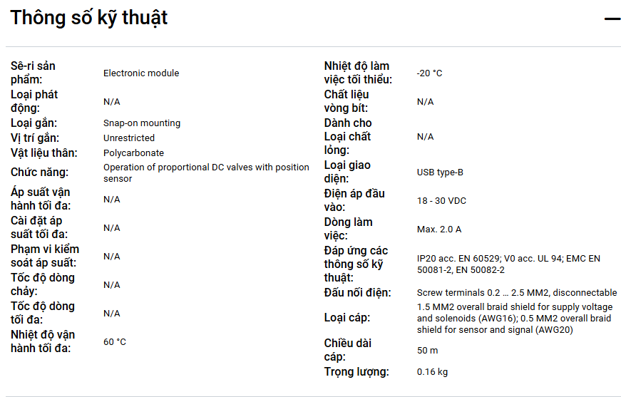 Mô-đun điện tử cho van điều khiển hướng tỉ lệ - Series PWDXXA-40*