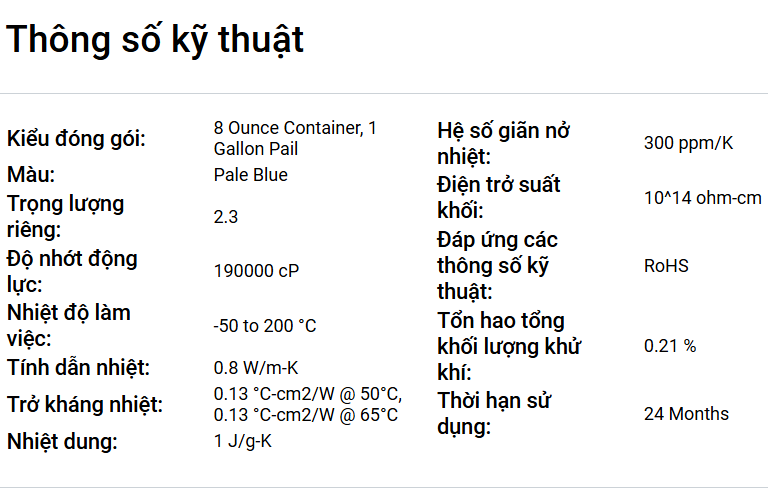 Mỡ tản nhiệt Parker Chomerics T650 có độ dẫn nhiệt 0.8 W/m-k.