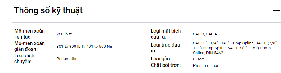 Powershift (Thuỷ lực hoặc Khí nén) 6-Bolt Power Take-Off (PTO) – 272U Series