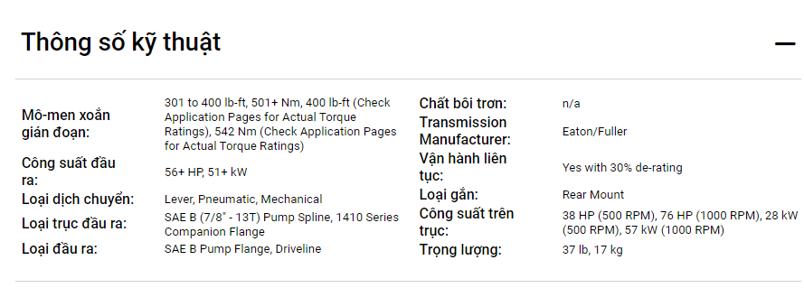 PTO cơ khí lắp sau dòng 541 - Hệ thống truyền động cơ học