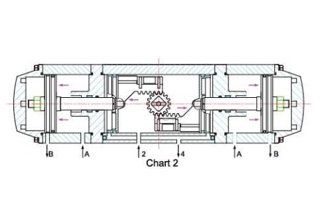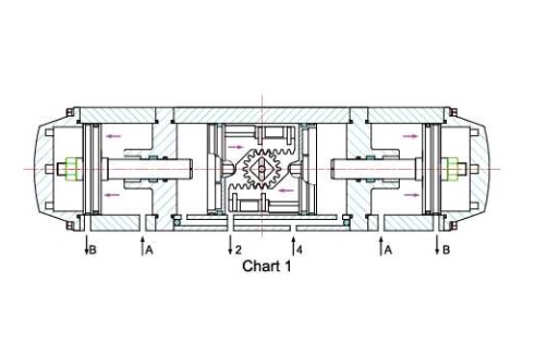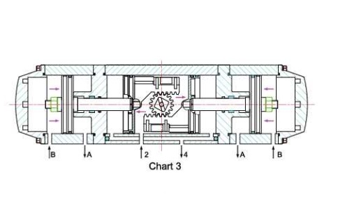 2. Fully Open Position From chart 2 we can see that this position is obtained when air is supplied to port 2 and portA, meantime, port 4 and port B are in the state of exhaust air