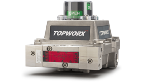 The TopWorx™ DXS is a 316 stainless steel valve controller that combines bus networking, pilot valve, and position sensors into a single globally certified, explosion proof enclosure that attaches to any automated valve package.