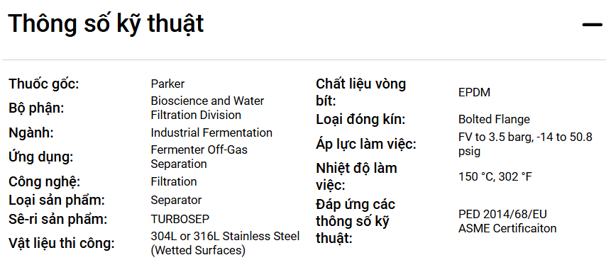 TURBOSEP Fermenter Off-Gas Separator-Parker