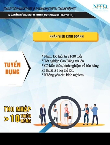 THÔNG BÁO TUYỂN DỤNG - 03 NHÂN VIÊN KINH DOANH - 2 NHÂN VIÊN MARKETING – THIẾT BỊ CÔNG NGHIỆP NHẬP KHẨU